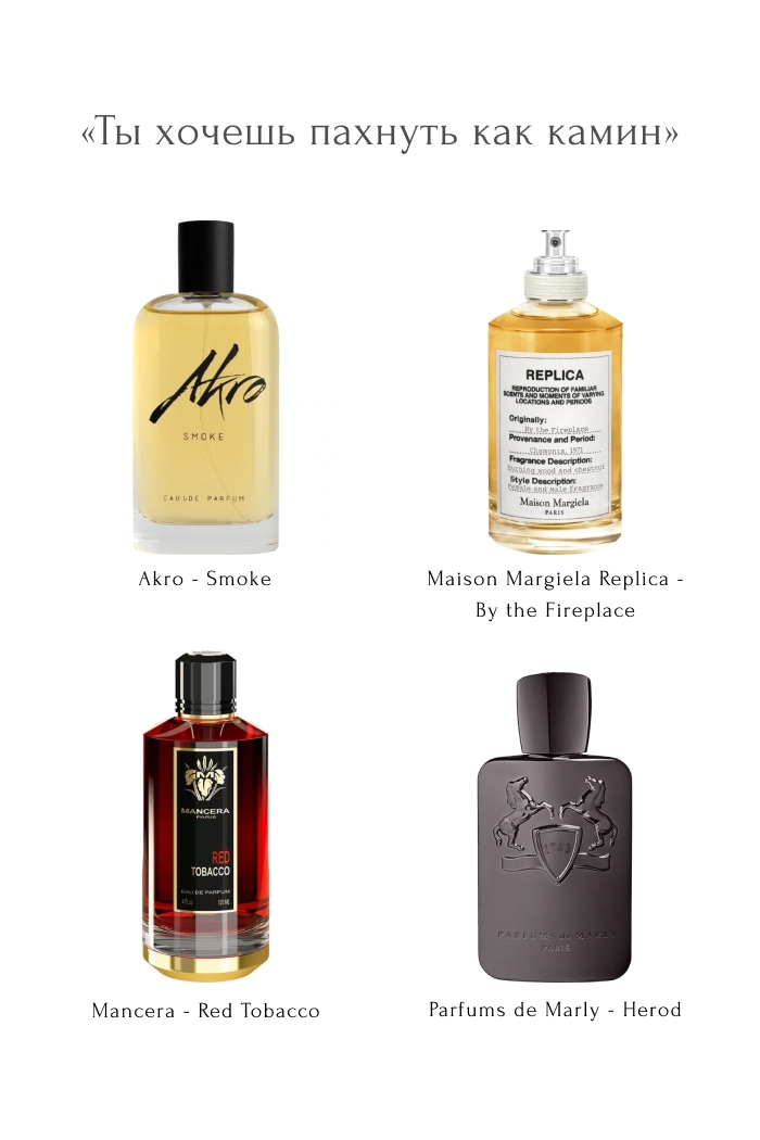 Тепло огня, дымный табак и пряные акценты — этот сет создаёт атмосферу уюта, силы и страсти. Каждый аромат — как отдельный миг вечера у камина, который хочется носить с собой.