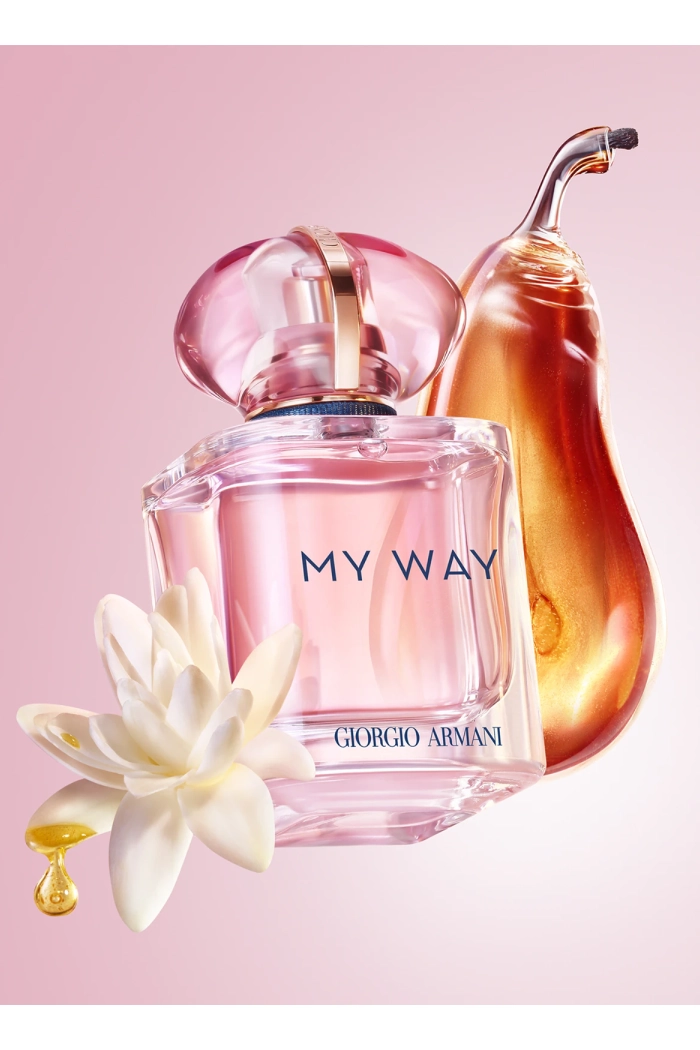 Giorgio Armani My Way Nectar — это яркий и насыщенный цветочно-фруктовый аромат с мягкой сладостью и бархатистым шлейфом. Он звучит современно и женственно, соединяя сочные фрукты, белые цветы и тёплую ванильно-мускусную базу. Открывается аромат сочным и светлым аккордом: груша придаёт мягкую фруктовую сладость, бергамот добавляет свежую цитрусовую искру, а цветок апельсина приносит солнечную цветочную нежность. В сердце раскрывается насыщенный белоцветочный букет. Тубероза звучит кремово и выразительно, жасмин добавляет бархатистую глубину, а лист фиалки вносит лёгкий зелёный и слегка пудровый оттенок, смягчая композицию. База делает аромат тёплым и обволакивающим: белый мускус создаёт эффект чистой кожи, бурбонская ваниль добавляет сладость и мягкость, а кедр придаёт композиции лёгкую древесную структуру.