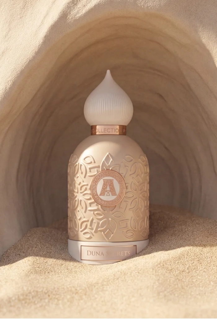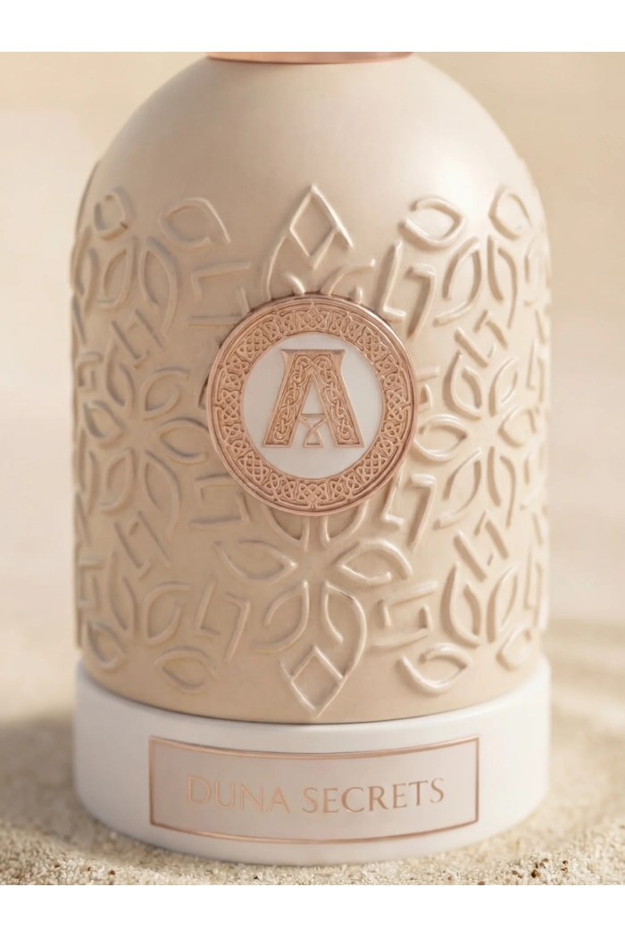 Нишевые духи Attar Collection Duna Secrets созданы в 2026 году как унисекс композиция в гурманском направлении. Это аромат тёплого песка, скрытой сладости, густого воздуха, наполненного пряной дымкой. Звучание плотное, обволакивающее, с характерной восточной глубиной. Открывается аромат сладкими и сочными фруктовыми нотами, создавая яркое и аппетитное начало с лёгким десертным настроением. В сердце раскрывается главный акцент композиции — шоколад. Он звучит густо, сливочно и немного тёмно, добавляя аромату глубину и настоящую гурманскую притягательность. База тёплая и обволакивающая: бензоин даёт смолистую сладость, ваниль усиливает мягкость и кремовость, а кедр и пачули добавляют древесную глубину и балансируют сладость.